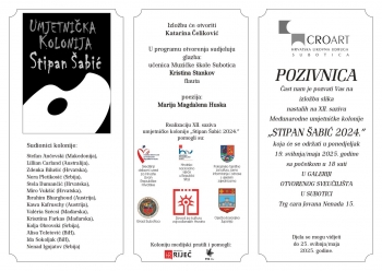 Izložba slika sa 12. saziva međunarodne umetničke kolonije "Stipan Šabić" u organizaciji udruženja "Cro Art" biće otvorena u ponedeljak, 19. maja 2025. godine u 18 sati.